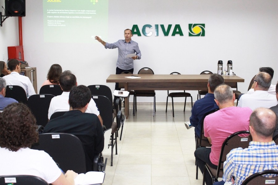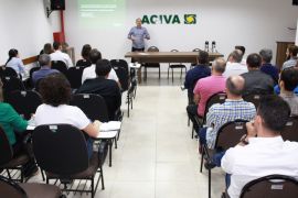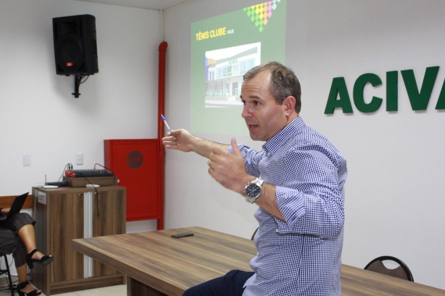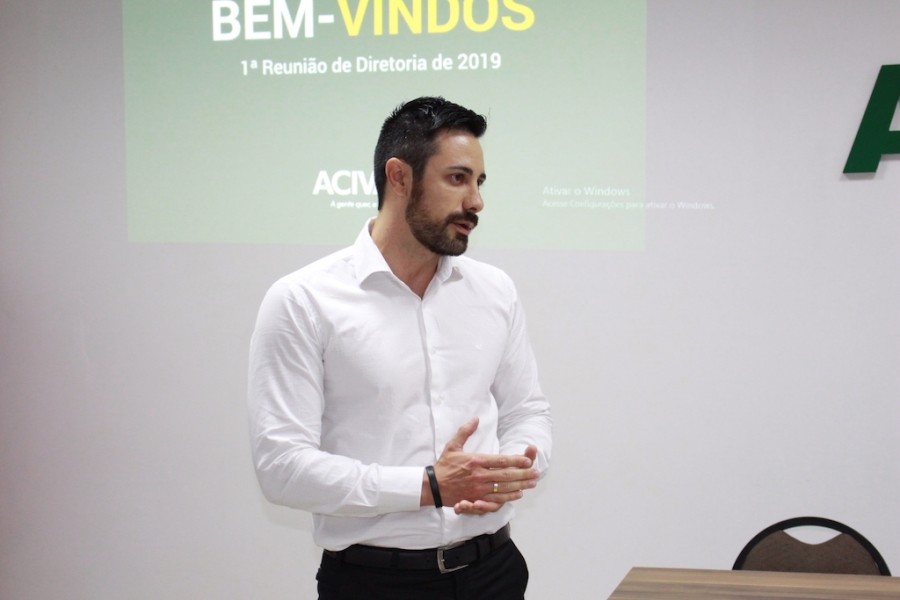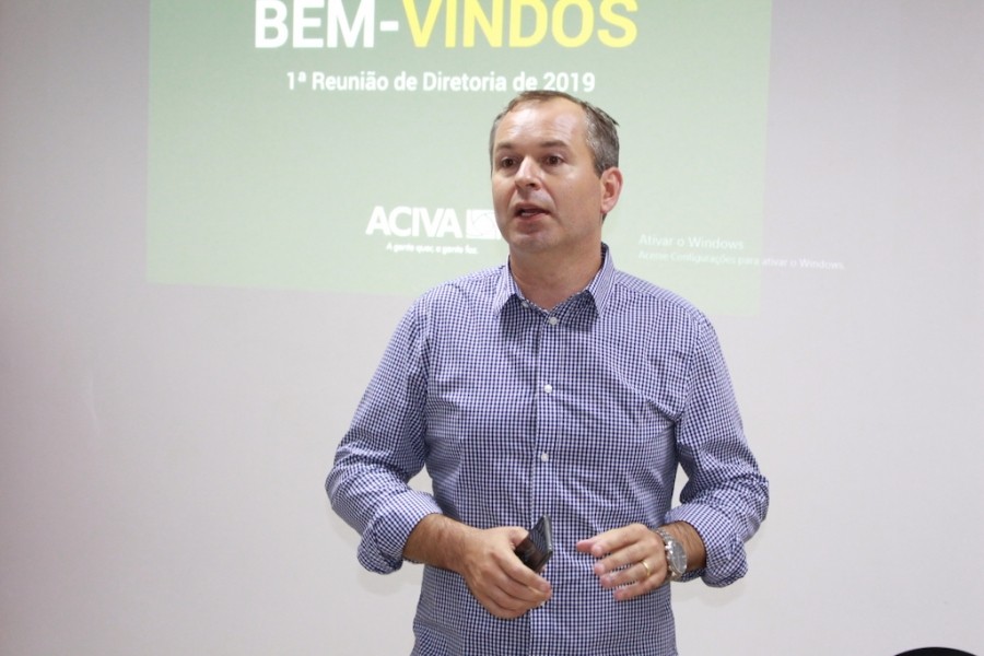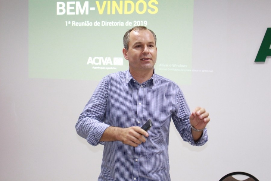 O presidente, André Pietsch Serafin, recebeu os diretores e associados da ACIVA no auditório 3, e durante aproximadamente 2h comandou a reunião, passando ponto por ponto, os assuntos mais importantes do ano.