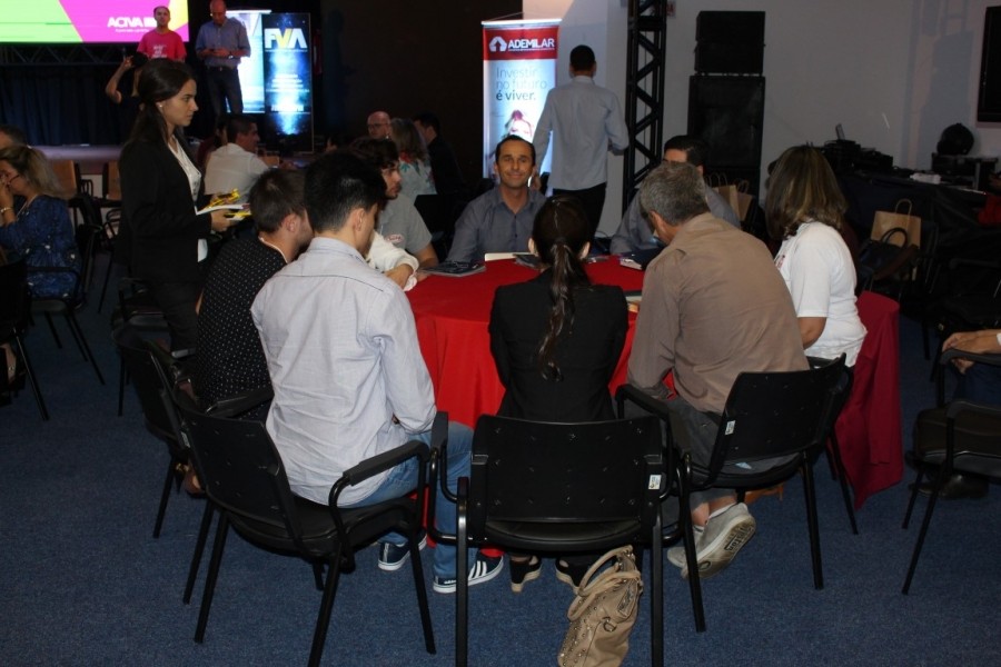 Organizada pela ACIVA, com apoio do Sebrae, a Sessão de Negócios teve a dinâmica de ser uma verdadeira rede de novos contatos para os empresários e empreendedores. O auditório foi dividido em mesas redondas. Cada empresa teve direito a um representante, que em um minuto, apresentava aos demais presentes o seu negócio. Desta forma, o evento proporcionou centenas de interações e diversas novas possibilidades de negócios.