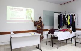Com o tema “O Poder da Imagem Pessoal: Comunique-se através do Seu Jeito de Vestir”, Neia utilizou uma modelo para ilustrar as informações repassadas por meio dos slides, deixando a palestra ainda mais interativa.