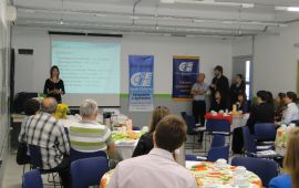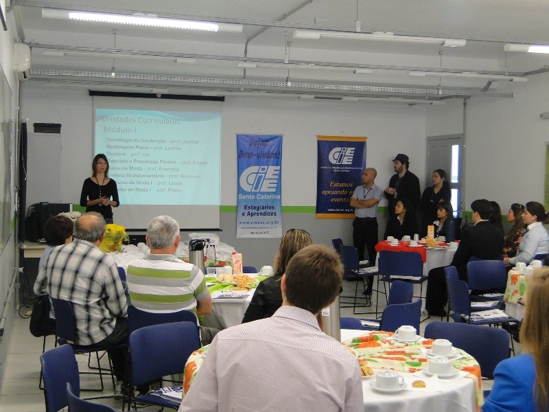 O Instituto Federal de Santa Catarina, junto do CIEE de Araranguá, promoveu na manhã de quarta-feira (15) um Café com Ideias para os empresários do setor vestuário. A ACIVA esteve presente, representada pela Secretária Executiva, Aline Garcia e pela Representante Comercial, Josi Rochedo. O encontro tinha o objetivo de ampliar a parceria de trabalho entre o Instituto, CIEE e as confecções. Os profissionais dos cursos de Moda e Técnico Têxtil em Malharia e Confecção apresentaram os conteúdos e as técnicas que são repassadas e que poderão ser utilizadas no mercado de trabalho. “O CIEE é a ponte entre o mercado e os novos profissionais. Queremos que os empresários do setor possam dar espaço em suas empresas aos alunos da Instituição, assim, estarão unindo a teoria e a prática de uma maneira mais econômica através do estágio”, declara Tatiane L. de Santos, Coordenadora da Agência Araranguá.