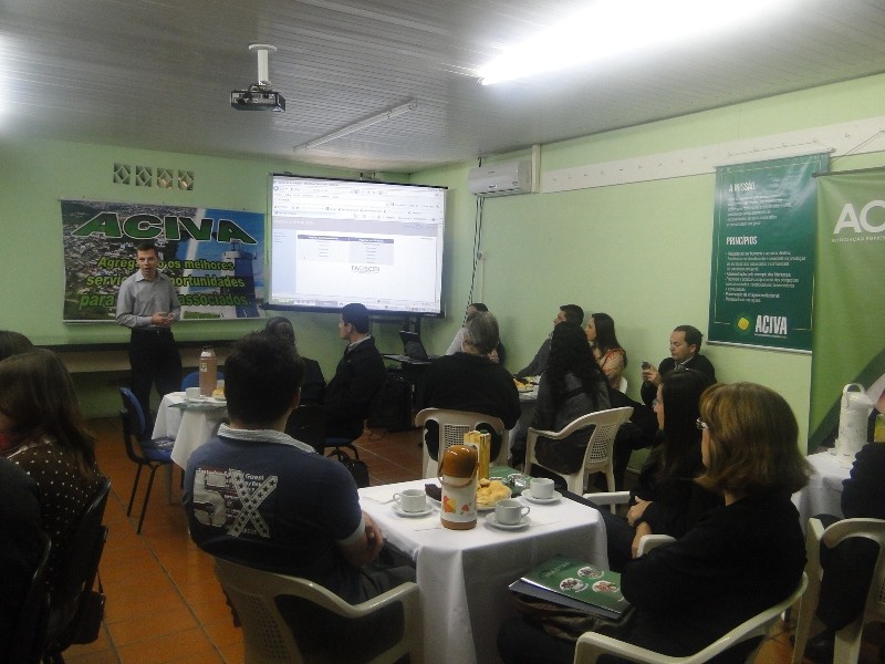 Na continuidade, o agente de soluções da FACISC, Ederson da Rosa, apresentou aos participantes as ferramentas disponibilizadas pela federação as quais são fornecidas aos associados da ACIVA.