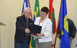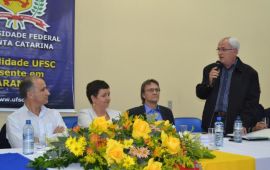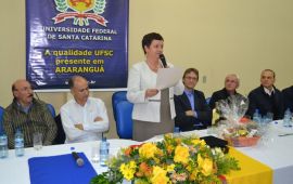Antes da manifestação de Roselane, Alceu homenageou a reitora com a entrega de uma placa, agradecendo ao apoio dado à região, em nome da Associação Empresarial. O Prefeito Sandro Maciel brindou a Reitora e o Deputado Pedro Uczai com produtos da região.