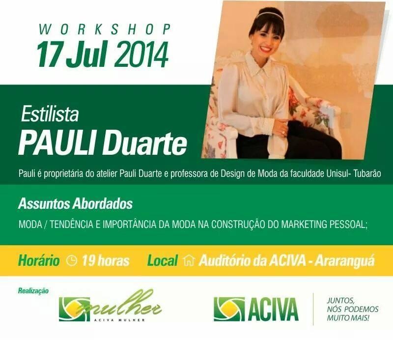A noite de amanhã, 17, será de conhecimento para as mulheres da região. A ACIVA Mulher promove um encontro especial com a estilista Pauli Duarte que irá abordar assuntos como moda e tendências.