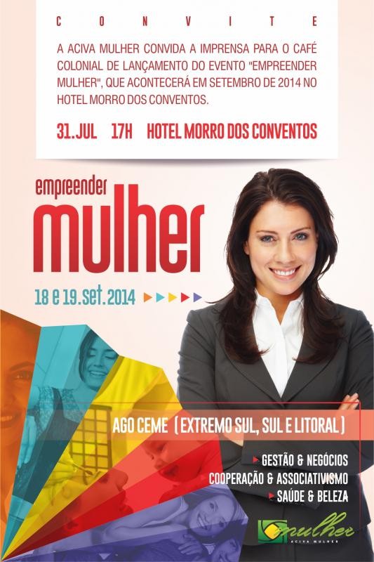 O lançamento será voltado à imprensa local e regional e será realizado no Hotel Morro dos Conventos, mesmo local que ocorre o Empreender Mulher. “Nosso objetivo é apresentar o evento e a programação aos principais veículos de comunicação do Extremo Sul. Entendemos que a imprensa é nossa parceira e contamos com ela na divulgação deste encontro”, destaca a coordenadora da ACIVA Mulher, Vanilsa Oliveira.