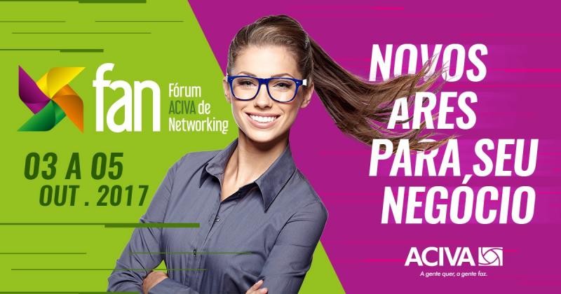 Entre os dias 03 e 05 de outubro, a ACIVA promove o 5º Fórum Aciva de Networking – FAN, que promete para este ano trazer grandes nomes do mundo empresarial para a Cidade das Avenidas