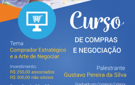 Com o tema "Comprador Estratégico e a Arte de Negociar", o curso terá a frente o palestrante Gustavo Pereira da Silva. De acordo com a secretaria Executiva, Josi Rochedo, o curso irá proporcionar ao profissional conhecer de forma estruturada as técnicas de negociação que possibilitará um domínio maior na arte de negociar.