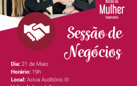 Como surgem bons negócios? A resposta para esta pergunta pode estar na Sessão de Negócios, que ocorrerá na próxima segunda-feira, dia 21 de maio, a partir das 19h no auditório III da Associação Empresarial de Araranguá e Extremo Sul Catarinense – ACIVA. O evento é organizado pelo Núcleo da Mulher Empresária com a metodologia do Sebrae.