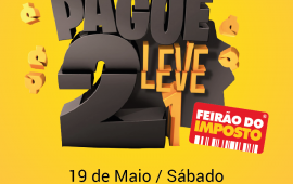 Pensando em alertar a população sobre a alta carga tributária do país, o Núcleo do Jovem Empreendedor da Associação Empresarial de Araranguá e Extremo Sul Catarinense – ACIVA, promove neste sábado, dia 19 de maio, a 6ª edição do Feirão do Imposto. A ação é realizada em nível nacional pela Confederação Nacional dos Jovens Empresários - CONAJE, com o tema “Pague Dois, Leve Um”.