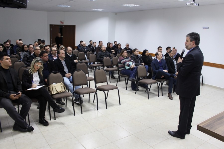 O público compareceu em bom número na noite de quinta-feira, 22, para prestigiar a palestra com o tributarista Dr. Felipe Fabro. Promovido na Associação Empresarial de Araranguá e Extremo Sul Catarinense (ACIVA), em parceria com o Sindilojas, CDL e Sindicont, o especialista abordou durante quase 1h, o atual cenário tributário brasileiro.