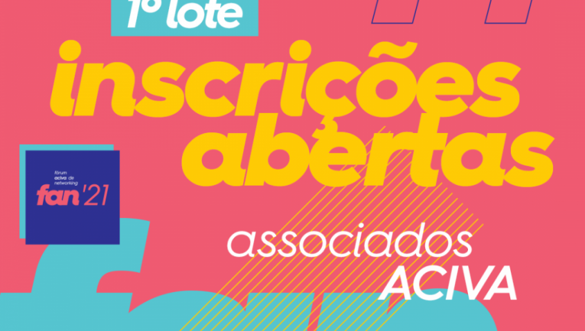 Em comemoração aos seus 50 anos, a edição 2021 do Fórum ACIVA de Networking será ainda mais especial. E como forma de prestigiar seus associados, o primeiro lote de inscrições é exclusivo para eles. A partir desta quinta-feira, 18, os interessados podem se inscrever gratuitamente para os dois primeiros dias de evento. O terceiro e último dia será destinado para a Sessão de Negócios, que possui valor especial para quem é associado à entidade.